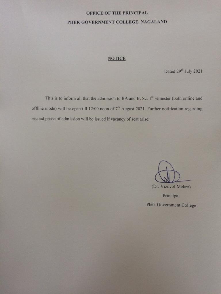 Admission to B.A./B.Sc. 1st Semester-2021 (both online and offline mode) will be open till 12:00 noon of 7th August 2021. Further notification regarding second phase of admission will be issued if vacancy of seat arise.